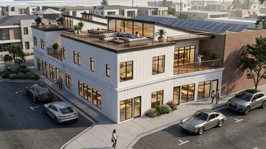 Mixed Use commercial and residential development project. Goal is to have three dwelling units above the commercial spaces below while also providing roof top amenities for the residential spaces.