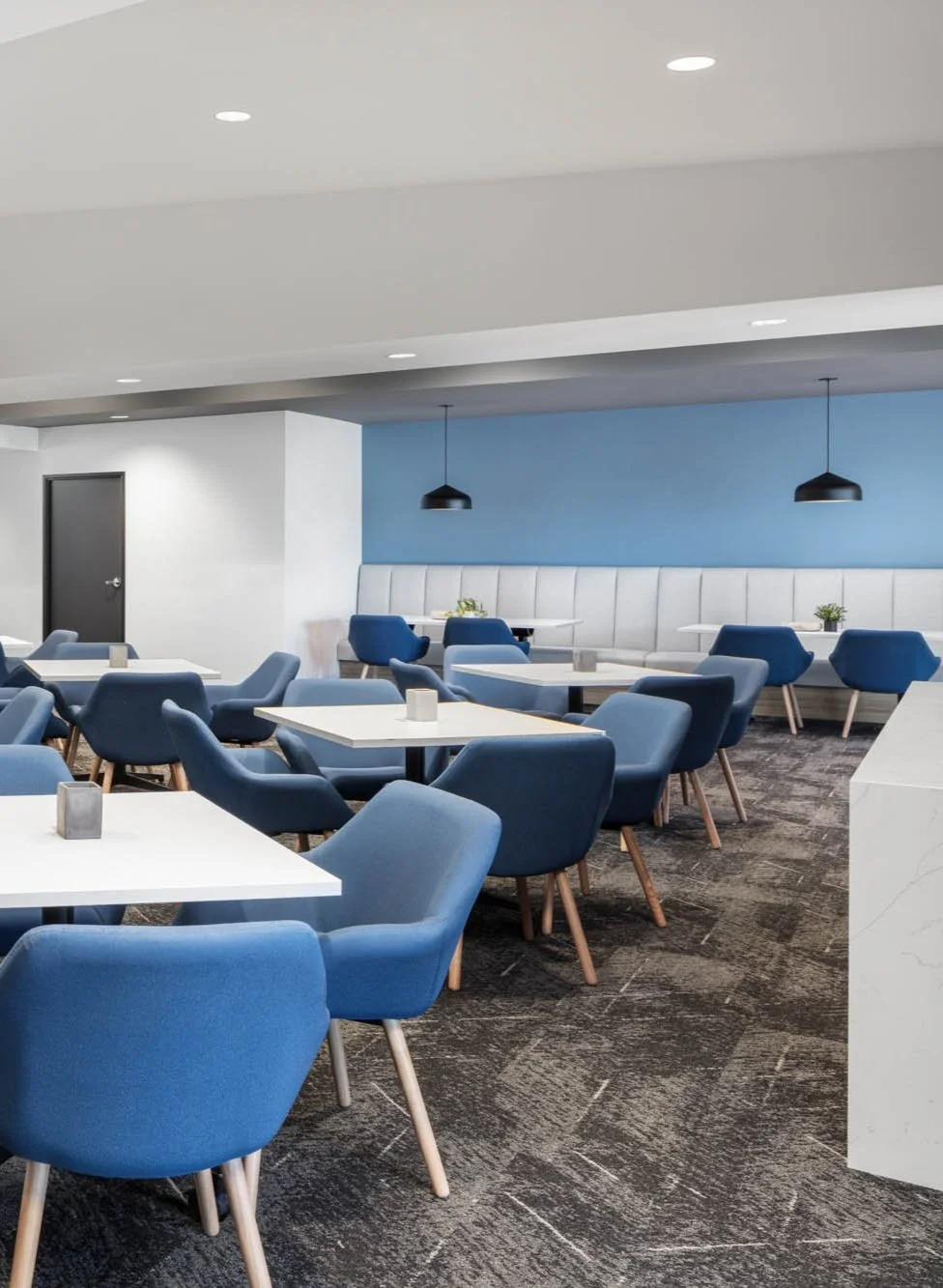 This project has been very unique because many elements have needed to be custom. One of the many elements were the custom benches in all the private offices. We had a very specific purpose and aesthetic for the benches so custom was the best solution for this aspect of the design.
